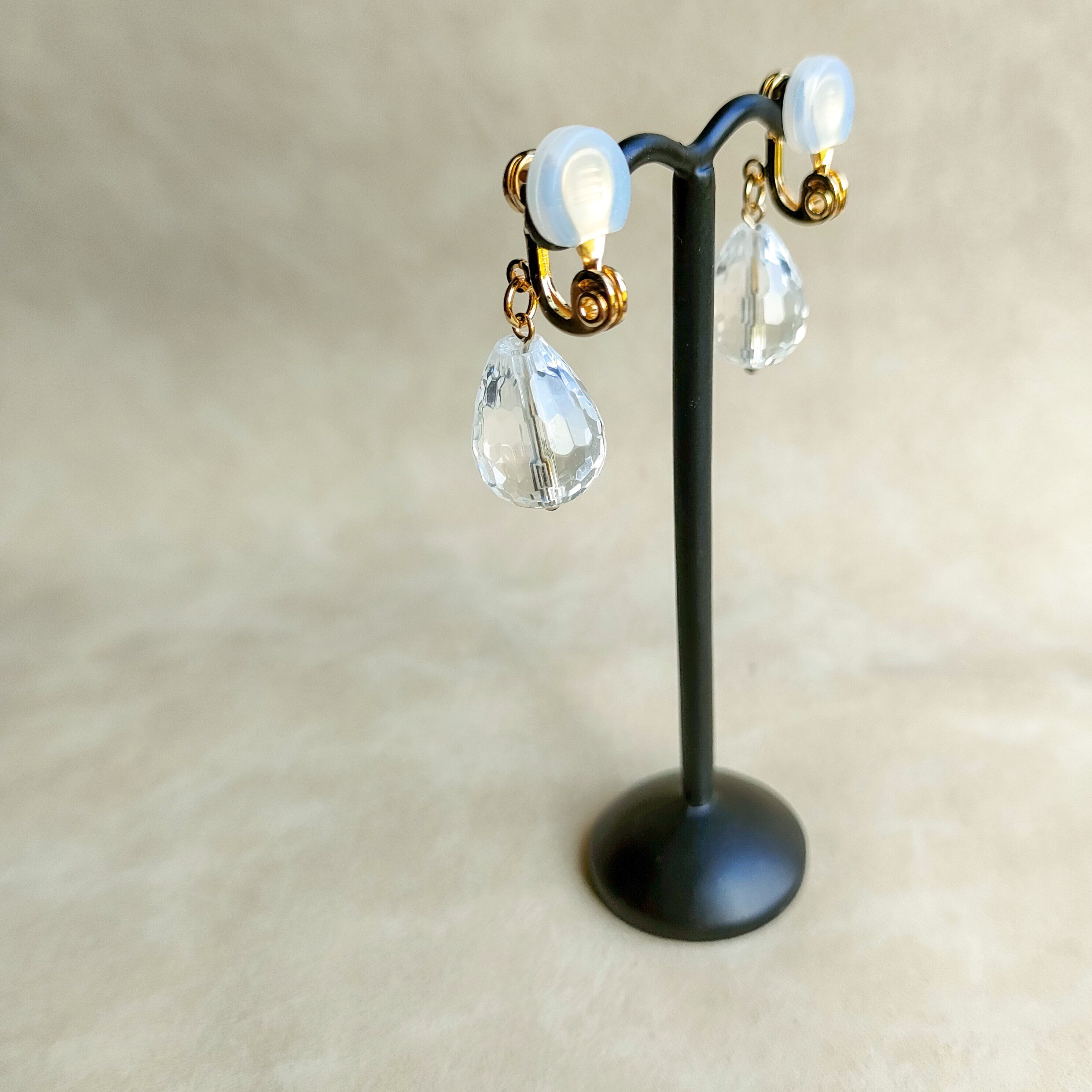 美しい輝きが魅力的な宝石質ドロップ型クリスタルのイヤリング。