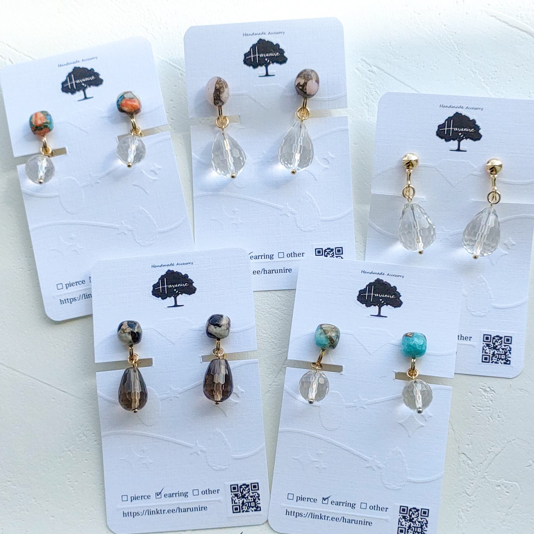 ※イヤリングと天然石の接着面には強度を保つため樹脂で加工しております。